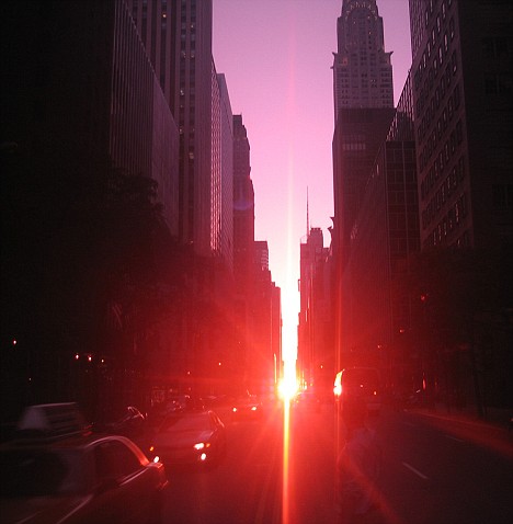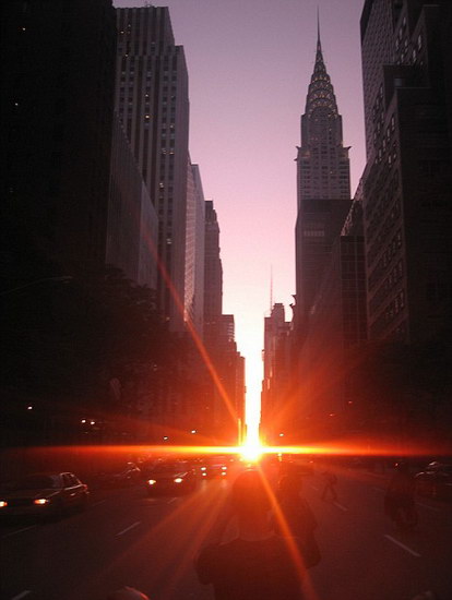 據(jù)悉,每年有兩天落日會對齊紐約曼哈頓主要的東西向街道,城市中高建筑會擋住落日,使曼哈頓看起來像是現(xiàn)代的巨石陣,整個紐約不夜城都沐浴在陽光下。