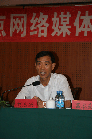 中共錦州市委書記劉志強向全國網(wǎng)絡(luò)媒體記者介紹錦州的發(fā)展?fàn)顩r。