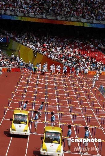 北京奧運(yùn)會田徑男子110米欄第一輪比賽,8月19日上午在北京奧林匹克公園內(nèi)的國家體育場舉行。中新社發(fā) 任晨鳴 攝