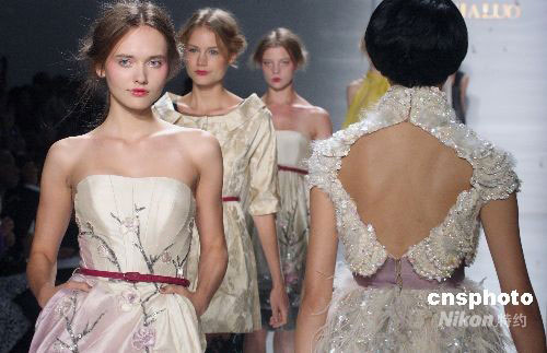 圖為世界名模參加中國女裝設(shè)計師羅崢作品展示。中新社發(fā) 錢興強 攝
