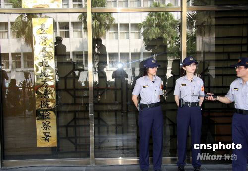 圖為一早就守候在臺北地方法院門口的女法警。中新社發(fā) 陳立宇 攝
