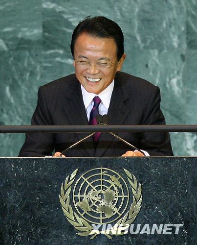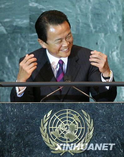 9月25日,在美國紐約聯(lián)合國總部,參加聯(lián)大一般性辯論的日本首相麻生太郎用日語講了幾分鐘后得知大會(huì)的日語翻譯未就位,臺(tái)下代表聽不懂他說什么時(shí)不禁有些尷尬地啞然失笑。當(dāng)日,第63屆聯(lián)大一般性辯論進(jìn)入第三天。新華社記者 侯俊 攝