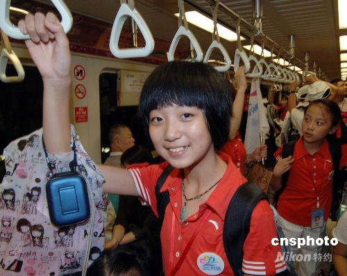 福建小營(yíng)員乘坐臺(tái)北捷運(yùn)、快樂(lè)體驗(yàn)臺(tái)北捷運(yùn)。中新社發(fā) 劉可耕 攝