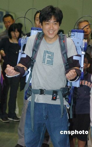 圖為穿戴式機器人。經(jīng)此類機器人“武裝”后的人可具備“超常能力”。中新社發(fā) 朱沿華 攝