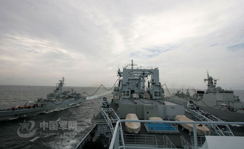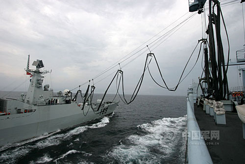 10月9日,南海艦隊(duì)某作戰(zhàn)支援艦支隊(duì)同某驅(qū)逐艦支隊(duì)數(shù)艘驅(qū)護(hù)艦,在二級海況下成功組織了高難度的“兩橫一縱”海上補(bǔ)給訓(xùn)練。他們克服風(fēng)大流急的影響,經(jīng)過多次協(xié)同演練,航行中的補(bǔ)給對接時(shí)間比最初縮短了10多分鐘,海上應(yīng)急支援能力得到提高。 中國軍網(wǎng)發(fā) 繞燕文攝