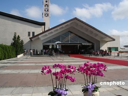 臺(tái)塑企業(yè)創(chuàng)辦人王永慶的遺體十七日由長(zhǎng)榮班機(jī)運(yùn)抵臺(tái)灣,靈堂設(shè)在桃園縣的長(zhǎng)庚大學(xué)活動(dòng)中心。圖為靈堂外景。中新社發(fā) 耿軍 攝
