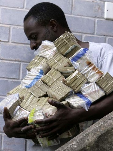 物價(jià)飛漲貨幣貶值 津巴布韋男子抱現(xiàn)金購(gòu)物(圖)