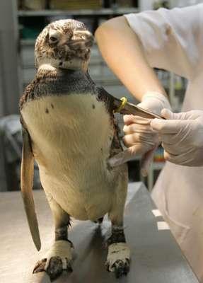 巴西救援人員將被沖上海灘的小企鵝送到尼泰羅伊動物園進行治療。