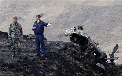 玻利維亞救援人員在直升機(jī)墜毀現(xiàn)場(chǎng)。