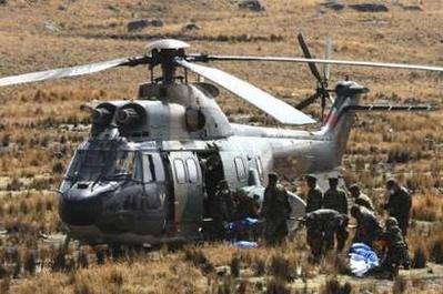 中新網(wǎng)7月22日電 綜合報(bào)道,當(dāng)?shù)貢r(shí)間20日,玻利維亞總統(tǒng)埃沃•莫拉萊斯經(jīng)常乘坐的一架法國(guó)產(chǎn)“超級(jí)美洲豹”軍用直升機(jī)在玻利維亞中部城市科恰班巴附近墜毀,機(jī)上5人全部遇難。玻利維亞總統(tǒng)莫拉萊斯當(dāng)時(shí)未在機(jī)上。