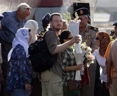 一名獲救的外國游客在抵達(dá)埃及后受到熱烈歡迎。