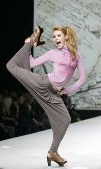 10月24日在莫斯科舉行的時(shí)裝周讓人大開眼界,模特們拋開舞臺(tái)上的矜持,用夸張的步伐、神態(tài)和自由的發(fā)揮展現(xiàn)另類服裝的另類魅力。