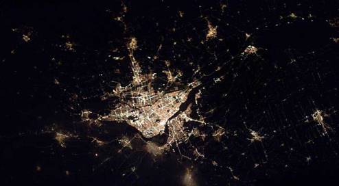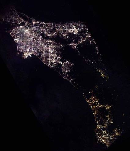美國南加州的夜景。其中高科技產(chǎn)業(yè)地區(qū)燈光十分明亮。