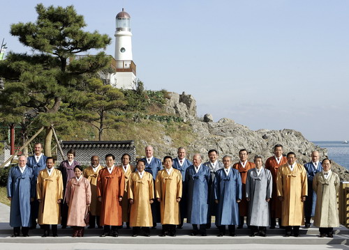 2005APEC峰會(huì):各領(lǐng)導(dǎo)人穿韓式大褂"圖魯馬吉"