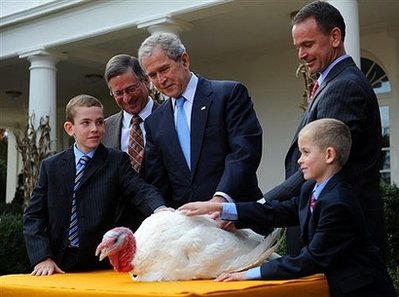 中新網(wǎng)11月27日 綜合報道,當?shù)貢r間26日,感恩節(jié)前日,小布什最后一次作為美國總統(tǒng),在白宮出席了一年一度的火雞放生儀式。在這個充滿溫暖氣氛的節(jié)日到來之際,布什的一言一行都顯得溫和、充滿感恩意味。