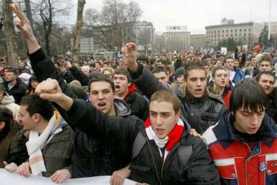 塞爾維亞首都貝爾格萊德各大院校的近萬名大學生18日中午聚集在市中心的共和國廣場,舉行大規(guī)模游行集會,抗議科索沃單方面宣布獨立。