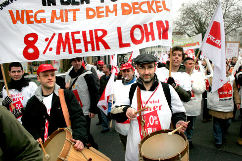上周四在波茨坦進(jìn)行的最后一輪勞資談判最后宣告破裂,工會隨即醞釀罷工。此次罷工的目的是要求大幅提高工資。工會要求為聯(lián)邦和市鎮(zhèn)機(jī)關(guān)130萬公務(wù)員一年提高工資8%,或者起碼每月漲工資200歐元,但是資方卻提出兩年內(nèi)分3個(gè)階段漲5%的條件,而且同時(shí)還要求延長工作時(shí)間。