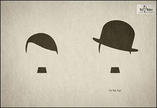 據(jù)英國(guó)媒體報(bào)道,在Hut Weber公司的這則廣告中,喜劇演員卓別林的圓頂禮帽下是希特勒標(biāo)志性的頭發(fā)和胡須。下方,一行英文寫(xiě)道:“這就是帽子!