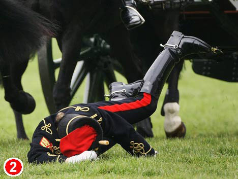 英國女王生日典禮 禮炮手疏忽大意摔下馬(組圖)