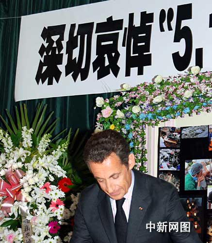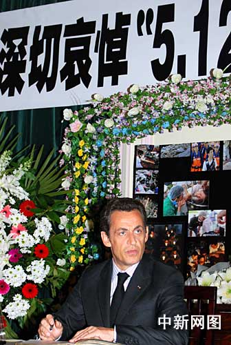 法國總統(tǒng)薩科奇悼念中國汶川地震遇難者。作 者:吳衛(wèi)中