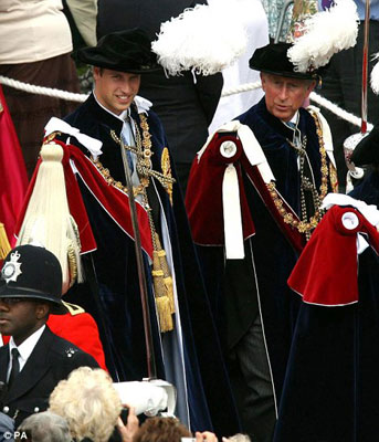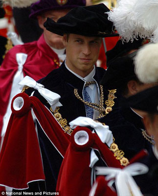 身穿騎士套裝的威廉王子看起來非常引人注目,當(dāng)他與父親、祖父以及其他騎士組成隊(duì)列走過時(shí),他的眼睛始終緊盯地面,神色顯得稍微有些局促不安。