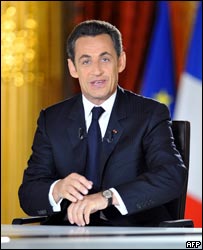 據(jù)英國(guó)廣播公司報(bào)道,薩科齊總統(tǒng)是星期一晚上在法國(guó)國(guó)家電視臺(tái)上發(fā)表的這一講話。
