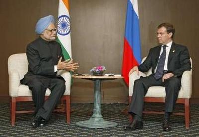 俄羅斯總統(tǒng)德梅德韋杰夫與印度總理曼莫漢·辛格在日本舉行會晤。