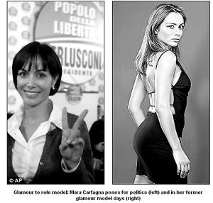 薩賓娜稱,瑪拉以前只是一名無上裝裸體模特,后轉(zhuǎn)行進入電視圈成為主持人。2006年,她被貝盧斯科尼相中,并在后者的提攜下從政。令意大利人目瞪口呆的是,2個月前,瑪拉竟被再次當選總理的老貝任命為意大利機會平等事務部長,成為老貝內(nèi)閣中最年輕的成員。