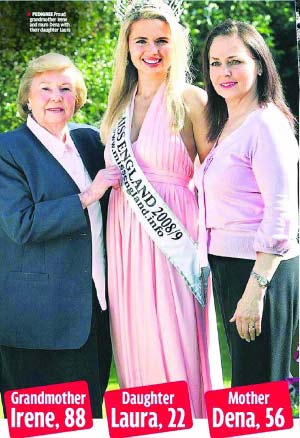 現(xiàn)年22歲的英國女孩勞拉·科爾曼在“英國小姐”選美大賽中擊敗其他49名決賽佳麗,一舉奪得了“英國小姐”的桂冠。然而鮮為人知的是,勞拉其實(shí)來自一個(gè)英國“選美世家”,她的外婆愛琳、母親迪娜都曾經(jīng)當(dāng)選過英國各個(gè)選美大賽中的“選美皇后”!