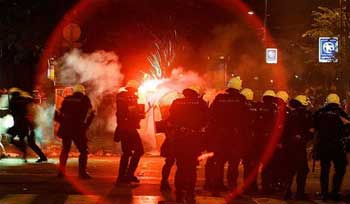 29日晚的抗議集會吸引約2萬人,這一人數(shù)比組織者所希望的少。100名據(jù)信是貝爾格萊德紅星足球俱樂部支持者隨后離開抗議集會人群,他們向防暴警察扔磚頭、炮竹,警方則用催淚彈和橡皮子彈進(jìn)行反擊。貝爾格萊德市中心很快變成一個垃圾場,街上到處都是玻璃和其它垃圾,40余人在沖突中受傷,其中包括一名西班牙攝影師。