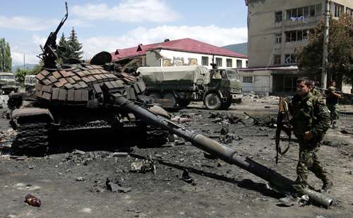 格魯吉亞坦克在茨欣瓦利被擊毀。