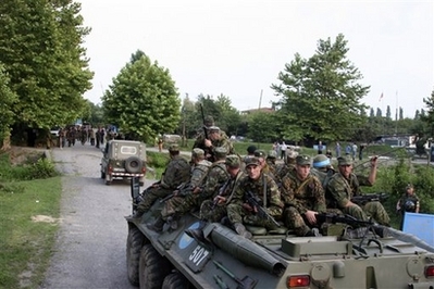 俄羅斯士兵乘裝甲車進(jìn)入阿布哈茲。