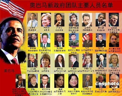 奧巴馬提名的內閣成員名單如下: