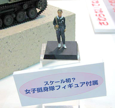 據(jù)悉,F(xiàn)inemolds公司最近在日本舉行展會(huì)時(shí)公開(kāi)了該產(chǎn)品,其中還有一句宣傳語(yǔ)“日本陸軍的夢(mèng)幻炮戰(zhàn)車,終于投入到前線!該尺寸(實(shí)物的1/35)產(chǎn)品首次包含了女子挺身隊(duì)塑像!币l(fā)爭(zhēng)議的女子挺身隊(duì)模型身穿水兵服、發(fā)型為中分加發(fā)髻、腳上是厚襪加橡膠鞋。