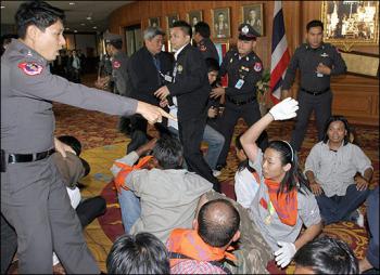 據新加坡《聯(lián)合早報》報道,由前參議員宗黃帕功帶領的1500名工會分子、學生和政治活躍人士闖入國會大廈,其中百約人趁保安人員沒留意,溜進大廈直闖會議廳,導致開會的議員不得不休會。示威者說,隨著大選即將在兩周后(23日)舉行,現(xiàn)任國會已經無權立法。