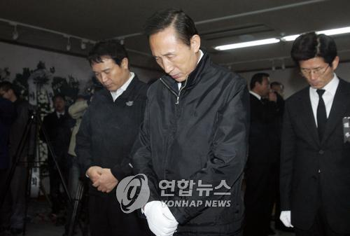 韓總統(tǒng)當(dāng)選人李明博慰問冷庫爆炸遇難者家屬(圖)