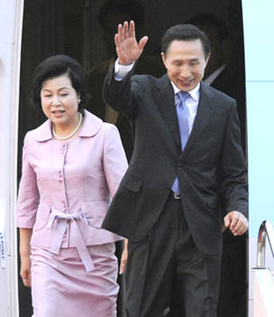 李明博抵達(dá)日本進(jìn)行訪問 今將會晤福田康夫(圖)