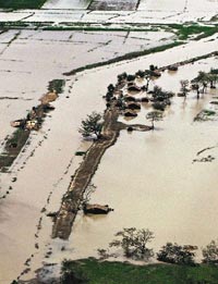 重災(zāi)區(qū)博葛禮已有逾1萬人死亡,95%屋子被摧毀,19萬人無家可歸。緬甸軍政府指,風(fēng)速達(dá)190公里的“納爾吉斯”卷起3.5米高巨浪,沖走低洼地區(qū)村落半數(shù)房屋,大量災(zāi)民在巨浪中溺斃。美國(guó)宇航局衛(wèi)星圖片顯示,緬甸西南部沿海平原完全被水淹沒。聯(lián)合國(guó)稱,受災(zāi)人口約2400萬人,接近全國(guó)一半人口。