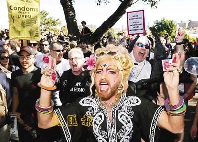 中新網(wǎng)7月20日電 澳大利亞悉尼的世界青年日活動19日繼續(xù)進(jìn)行,而示威者為表達(dá)對天主教教宗本篤十六世反同性戀及反避孕立場的不滿,便乘朝圣游行隊伍中的年輕教徒通過市內(nèi)的同性戀區(qū)時,向他們投擲安全套。