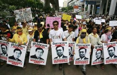 反政府示威者抗議總理頌猜采用強制手段鎮(zhèn)壓民眾。當(dāng)日,示威者封鎖了一條商業(yè)街道,并四處散發(fā)記錄7日警民對峙的碟片及照片,還有人高舉稱警察總長和頌猜為“殺手”的標(biāo)語。
