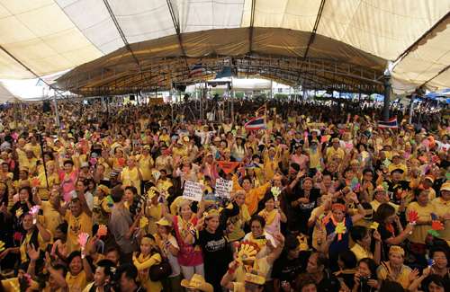 泰國(guó)人民民主聯(lián)盟示威者聞及他信獲罪,興奮不已。