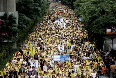 中新網(wǎng)10月31日電 據(jù)“中央社”報道,泰國擁政府派誓言10月31日展開集會,加上反政府的人民民主聯(lián)盟群眾30日凌晨遭手榴彈攻擊,社會對立的緊張氣氛高漲。分析認(rèn)為,緊張氣氛恐怕在11月1日前總理他信越洋聯(lián)機活動當(dāng)天達高峰。