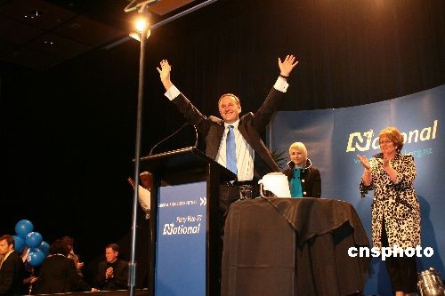 當(dāng)?shù)貢r間11月8日,2008新西蘭大選最后以國家黨勝出而告終,國家黨黨魁John Key當(dāng)選新西蘭下一屆總理。中新社發(fā) 李凌昊 攝