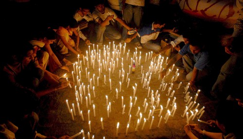印度兒童點(diǎn)燃蠟燭為孟買(mǎi)恐怖襲擊遇害者哀悼