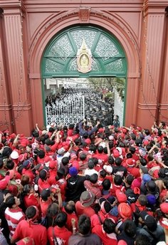 泰國支持他信的“紅衫軍”“反獨(dú)裁民主聯(lián)合陣線”(UDD)日前在國會大廈外進(jìn)行示威時(shí),誤將國王普密蓬和王后詩麗吉的畫像放在一幅帶有攻擊性標(biāo)語的邊上,此舉倍受指責(zé),反獨(dú)裁民主聯(lián)合陣線的領(lǐng)導(dǎo)人將面臨冒犯君主罪的起訴。