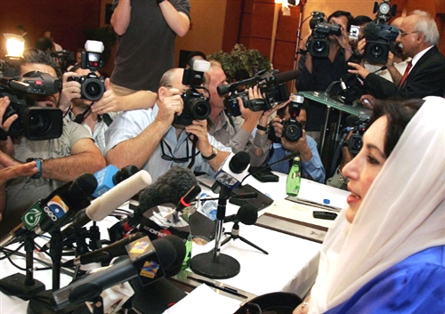 貝•布托表示,她將領(lǐng)導(dǎo)巴基斯坦人民黨為國(guó)會(huì)選舉作好準(zhǔn)備,希望爭(zhēng)取第3度當(dāng)選總理。巴國(guó)警方派出2萬(wàn)警力保護(hù)她。