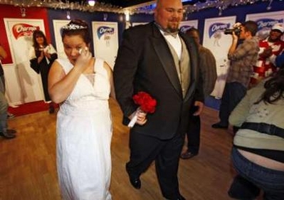 中新網(wǎng)紐約12月20日電 19日,來(lái)自美國(guó)肯塔基州列克星頓的新娘珍妮弗•坎農(nóng)和新郎多伊•尼科爾斯在紐約泰晤士廣場(chǎng)的豪華公廁舉行了一場(chǎng)別開生面的婚禮。