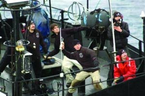 自日本捕鯨船隊去年11月駛往南極海域開始“捕鯨之旅”后,就一直遭到澳大利亞、新西蘭、英國、美國等反捕鯨人士的圍追堵截。日前,日本捕鯨船“日新丸”號在南極海域再次受到環(huán)保組織船只的干擾,“日新丸”號自稱投擲警告彈還擊,但對方稱日本當(dāng)時開了槍。當(dāng)天,日本駐倫敦大使館也遭反捕鯨分子闖入抗議。