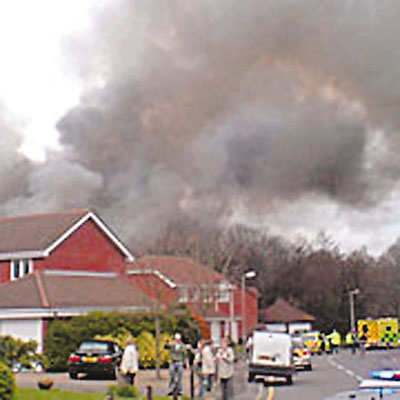 英國(guó)小型飛機(jī)居民住宅區(qū)墜毀 恐至少6人死亡(圖)