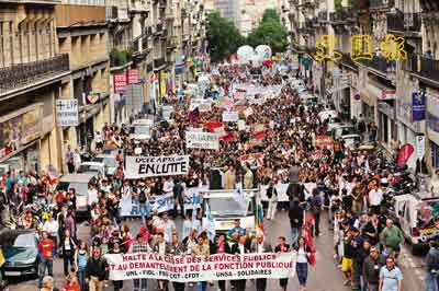 中新網(wǎng)5月16日電 法國公務員15日大罷工,抗議政府裁減公務員職位,全國有約100多場示威,上街公務員以教師為主,但亦包括醫(yī)院員工、海關人員、稅務官員、文化界員工等。這已是總統(tǒng)薩科齊去年上臺以來第3次大規(guī)模公務員罷工,使其公務員體制改革再受挑戰(zhàn)。另外,工會已準備下周四舉行更大型的罷工,會涉及更多行業(yè)。